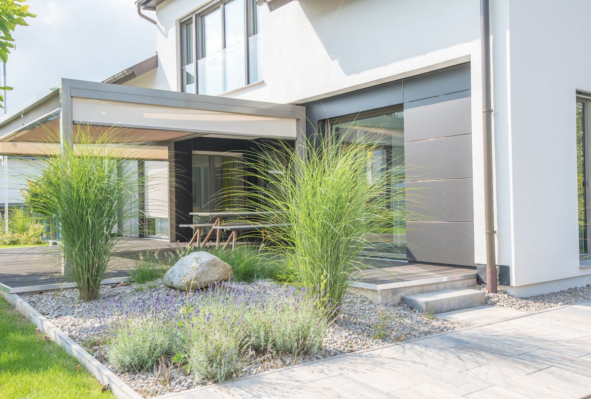 Bei Hitze fungieren natürliche Baustoffe wie Ziegel oder Kalkstein hingegen als Puffer. Holz und Stroh zeigen ebenfalls gute Eigenschaften in Bezug auf die Wärmeleitfähigkeit auf und sind zudem sowohl in der Herstellung als auch in der Entsorgung nachhaltig und klimaschonend. Die Farbe der Fassade wirkt sich ebenfalls auf die Temperaturen im Inneren des Hauses aus: Helle Farben reflektieren das Sonnenlicht stärker und heizen sich daher nicht so stark auf wie dunklere Farbtöne. Daher sollten Sie beim Neubau oder bei einer umfassenden Gebäudesanierung darüber nachdenken, ob eine klimaangepasste Fassade für Ihr Haus sinnvoll ist und den Vorschriften des Bauplanungsrechts entspricht.
